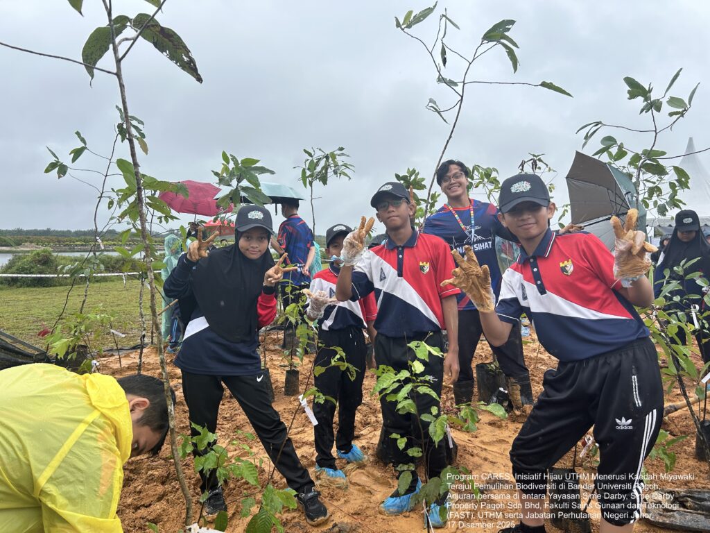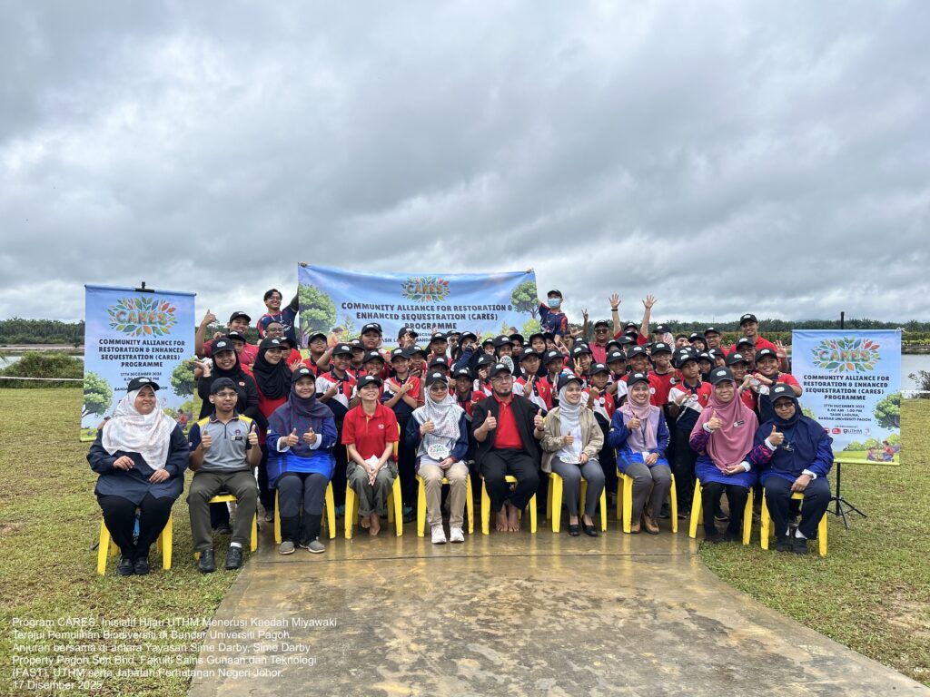 17 Dis 2025, Pagoh – Kelestarian alam sekitar di Bandar Universiti Pagoh (BUP) kini memasuki fasa baharu dengan penganjuran program Community Alliance for Restoration & Enhanced Sequestration (CARES) yang berlangsung meriah di Taman Etnobotani, Tasik Laguna hari ini. Program pemindahan ilmu dan SULAM (Service Learning Malaysia-University for Society) yang berimpak tinggi ini merupakan anjuran bersama di antara Yayasan Sime Darby, Sime Darby Property Pagoh Sdn Bhd, Fakulti Sains Gunaan dan Teknologi (FAST), UTHM serta Jabatan Perhutanan Negeri Johor. Majlis turut diserikan dengan kehadiran tetamu kehormat, Encik Hisam bin Hamzah, Ketua Perbandaran Sime Darby Property Pagoh Sdn Bhd, Dr. Yasmin binti Rasyid, Pengurus Besar Kelestarian Sime Darby Property, serta Puan Noratikah Mustafa yang mewakili Pejabat Hutan Daerah Johor Utara, Jabatan Perhutanan Negeri Johor.