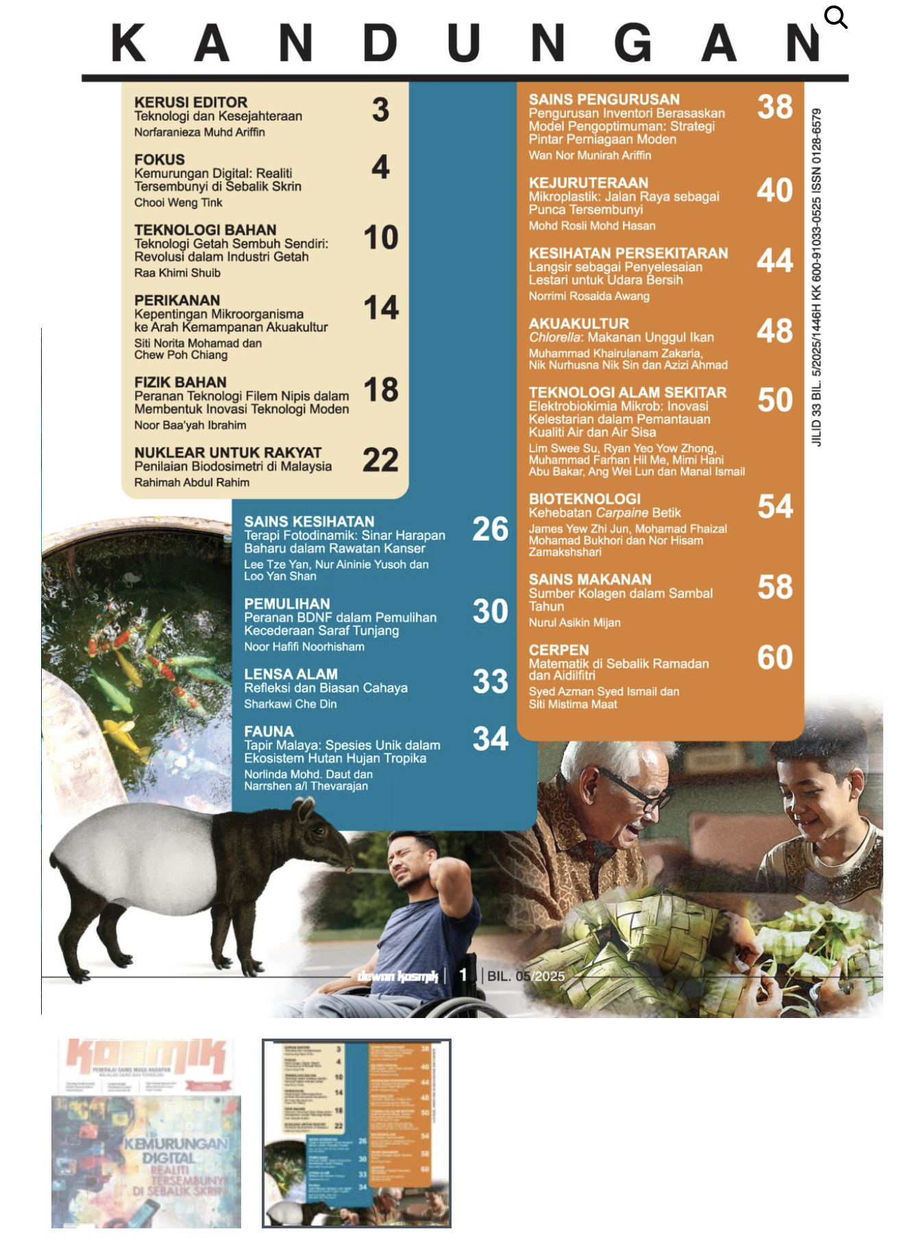 Tahniah diucapkan kepada Ts. Dr. Wan Nor Munirah Ariffin atas penerbitan artikel beliau dalam majalah KOSMIK edisi Mei 2025, bertempat di muka surat 38, dengan tajuk yang menarik dibawah topik Sains Pengurusan iaitu: