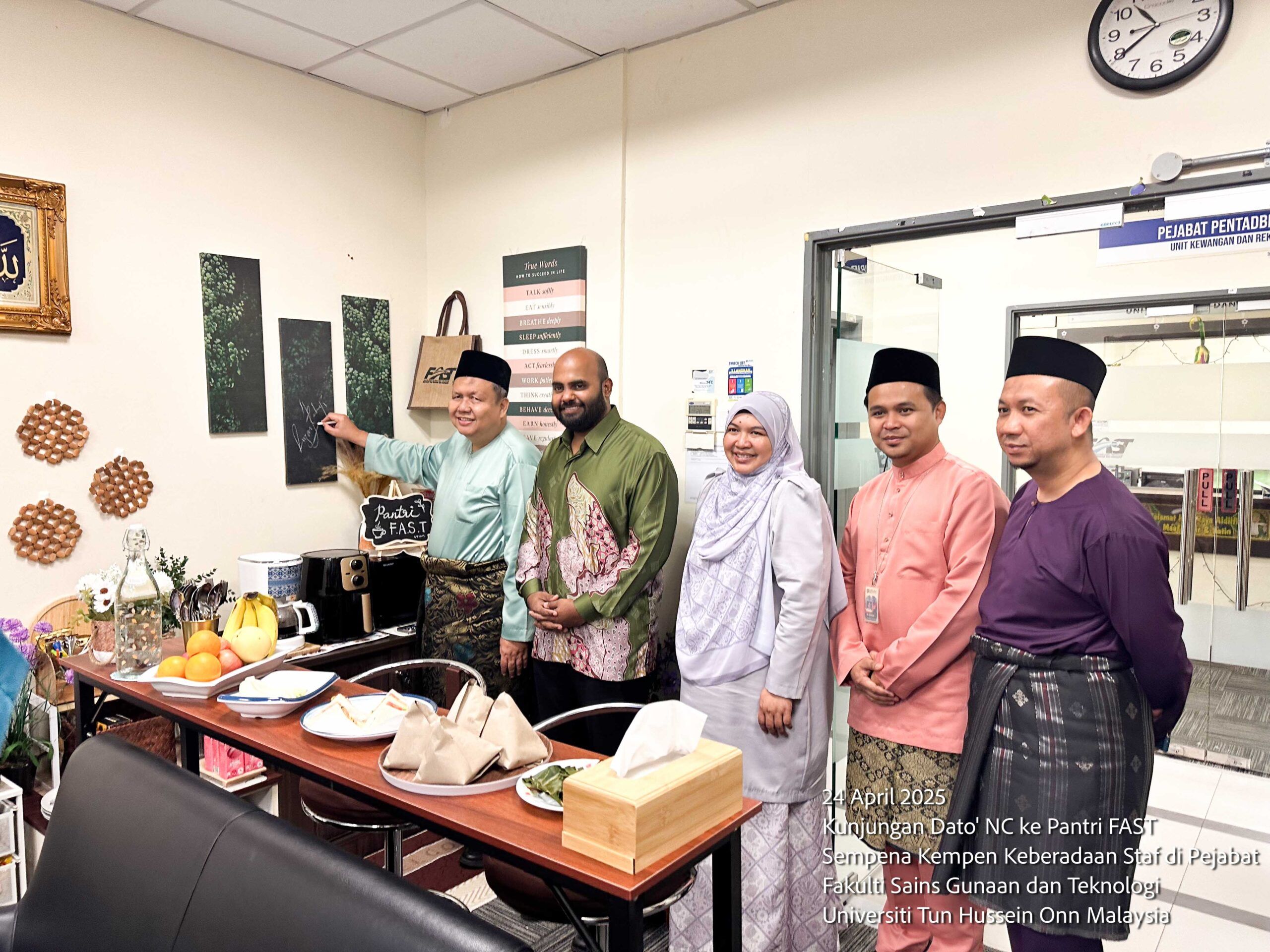 Seiring dengan pelaksanaan Kempen Keberadaan Staf di Pejabat yang semakin mendapat perhatian dalam kalangan Pusat Tanggungjawab (PTJ) di Universiti Tun Hussein Onn Malaysia (UTHM), Fakulti Sains Gunaan dan Teknologi (FAST) telah mengambil inisiatif menaik taraf kemudahan pantri fakulti sebagai usaha mewujudkan suasana kerja yang lebih kondusif, selesa dan menyokong kesejahteraan staf.