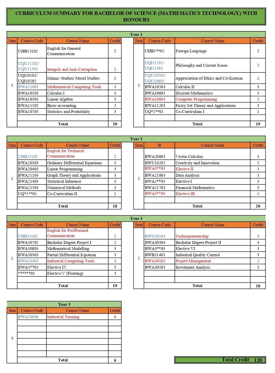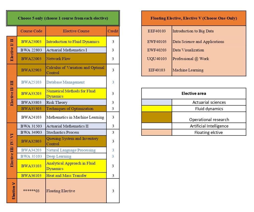 The offering of the Bachelor of Science (Mathematics Technology) program with Honours is in response to the challenges of higher education in the country, which is to produce graduates who are competent and tauhidic attitude by training and a holistic multidisciplinary program to meet current market needs and be able to compete globally. This effort is realized with the energy deployment and the optimization of expertise.